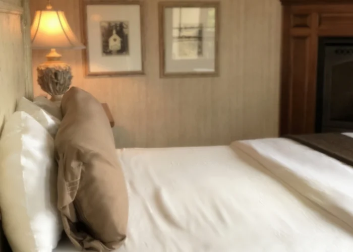 This suite is named after our beloved family mascot, because of the slight purring sound (like Buster’s sweet snores) from the wood-burning oven fan in the restaurant below. For those who may sleep lightly unlike our dog Buster. We recommend booking one of our other 6 wonderful suites. The Buster Suite experiences a light humming similar to a white noise machine.Get a great nights sleep on a plush California king bed. Enjoy the private balcony, fireplace, a tub with a separate double-headed shower, wet bar, TV player for one night or many! This room is a staff favorite with the bath tub being large enough for two! (SAME AS 203 & 204)